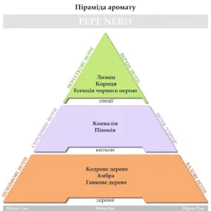 Опис аромату: східно-пряний аромат, який починається зі свіжої цитрусової ноти лимона, посилений жвавим ароматом кориці і чорного перцю. У серці розкриваються м’які дотики конвалії і півонії. Слідом домінує дерев’яна база, збагачена кедровими деревами, бурштином та гваяковим деревом.